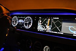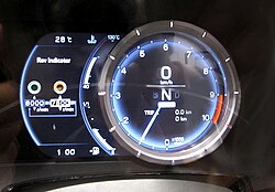 Since the mid-2010s and early 2020s, fully customizable digital instrument clusters have become popular. The modern implementation allows the driver to choose which information to project where and how in the instrument cluster, such as navigation aid, connected phone information and blind spot camera view.[17][18] The customization can also reduce distraction for the driver and allow the manufacturer to use the same hardware in different models while retaining differentiation between models.[19]