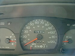 [edit]When accelerating, digital speedometers generally step through a freeze frame of whole numbers at a constant sample rate. It is as precise as the number displaced, whereas a gauged speedometer pointer could sweep through an infinite range between its major markings at 10 mph or 20 km/h intervals. The latter provides a sense of continuous acceleration albeit with less precision: a gauge reading could only be estimated to the pointer's nearest halfway point between the markings.[11][12][13]
