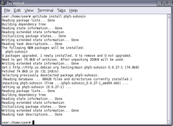 [edit]Package management operations can be performed with different tools available on Debian, from the lowest level command dpkg to graphical front-ends like Synaptic. The recommended standard for administering packages on a Debian system is the apt toolset.[119]