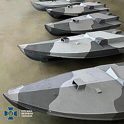Since at least September 2022, Ukraine has used black naval drones, equipped with the Starlink satellite internet system, to carry attacks on the Russian Black Sea fleet at the Sevastopol Naval base.[66][67][68][69] The naval drones were at first assumed to be for reconnaissance, but appear to carry munitions and act as a bomb.[70] With experts noting that the sensors on the front of the naval drone could be used as a laser range finder to help in targeting.[70] In late October 2022, seven of these drones were used to mount a successful drone attack on the Sevastopol Naval base.[66][71]