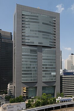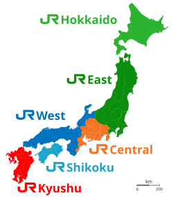 The East Japan Railway Company[10] is a major passenger railway company in Japan and the largest of the seven Japan Railways Group companies. The company name is officially abbreviated as JR-EAST[11] or JR East in English, and as JR Higashi-Nihon (JR東日本, Jeiāru Higashi-Nihon; lit. 'JR East Japan') in Japanese. The company's headquarters are in Yoyogi, Shibuya, Tokyo, next to Shinjuku Station.[2] It is listed in the Tokyo Stock Exchange (it formerly had secondary listings in the Nagoya and Osaka stock exchanges), is a constituent of the TOPIX Large70 index, and is one of three Japan Railways Group constituents of the Nikkei 225 index, the others being JR Central and JR West.