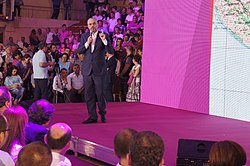 [edit]In 2013, the Socialist Party of Rama led the coalition of center-left parties (that included his former opponents, the SMI) into a landslide victory in the parliamentary election defeating the center-right coalition led by Prime Minister Sali Berisha. His platform, nicknamed "Renaissance"[25] was based on four pillars: European integration, economic revitalisation, restoration of the public order and democratisation of the state institutions. Since September 2013, Rama has been serving as the Prime Minister of Albania.[26]