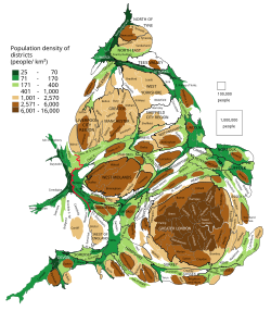 Under the newly formed Kingdom of Great Britain, output from the Royal Society and other English initiatives combined with the Scottish Enlightenment to create innovations in science and engineering, while the enormous growth in British overseas trade protected by the Royal Navy paved the way for the establishment of the British Empire. Domestically it drove the Industrial Revolution, a period of profound change in the socioeconomic and cultural conditions of England, resulting in industrialised agriculture, manufacture, engineering and mining, as well as new and pioneering road, rail and water networks to facilitate their expansion and development.[66] The opening of Northwest England's Bridgewater Canal in 1761 ushered in the canal age in Britain.[67] In 1825 the world's first permanent steam locomotive-hauled passenger railway – the Stockton and Darlington Railway – opened to the public.[67]