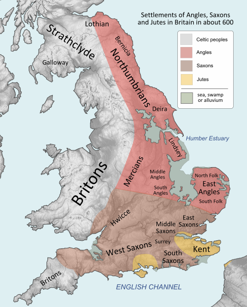[edit]The English population was not politically unified until the 10th century. Before then, there were a number of petty kingdoms which gradually coalesced into a heptarchy of seven states, the most powerful of which were Mercia and Wessex. The English nation state began to form when the Anglo-Saxon kingdoms united against Danish Viking invasions, which began around 800 AD. Over the following century and a half England was for the most part a politically unified entity, and remained permanently so after 954.