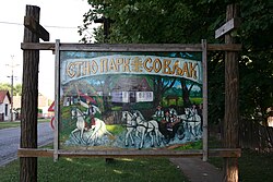 [edit]Sovljak is located on the road from Bogatić to Crna Bara, five kilometers from the municipal center of Bogatić and equally distant from the river Drina. The Ethno Park features an authentic yard with a homestead, over a hundred years old. The yard is dominated by a house, built in the second phase of construction in Mačva of the "osećanski" type, typical for that time – with two entrances, i.e., an entrance and an exit, and a sundial indicating the exact time. Next to the house is an old linden tree with a trunk diameter of 1.80 meters.
