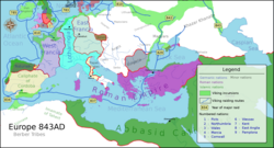 The Roman Empire did not attach a strong identity to the concept of continental divisions. However, following the fall of the Western Roman Empire, the culture that developed in its place, linked to Latin and the Catholic church, began to associate itself with the concept of "Europe".[35] The term "Europe" is first used for a cultural sphere in the Carolingian Renaissance of the 9th century. From that time, the term designated the sphere of influence of the Western Church, as opposed to both the Eastern Orthodox churches and to the Islamic world.