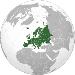 Clickable map of Europe, showing one of the most commonly used continental boundaries[u]
