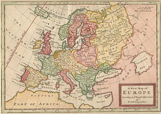 Four years later, in 1725, Philip Johan von Strahlenberg was the first to depart from the classical Don boundary. He drew a new line along the Volga, following the Volga north until the Samara Bend, along Obshchy Syrt (the drainage divide between the Volga and Ural Rivers), then north and east along the latter waterway to its source in the Ural Mountains. At this point he proposed that mountain ranges could be included as boundaries between continents as alternatives to nearby waterways. Accordingly, he drew the new boundary north along Ural Mountains rather than the nearby and parallel running Ob and Irtysh rivers.[40] This was endorsed by the Russian Empire and introduced the convention that would eventually become commonly accepted. However, this did not come without criticism. Voltaire, writing in 1760 about Peter the Great's efforts to make Russia more European, ignored the whole boundary question with his claim that neither Russia, Scandinavia, northern Germany, nor Poland were fully part of Europe.[35] Since then, many modern analytical geographers like Halford Mackinder have declared that they see little validity in the Ural Mountains as a boundary between continents.[41]