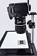 Alternatively, a macro lens can be used along with specialized accessories,[25] or an appropriate backlight and supports to ensure the camera's sensor is held parallel to the film's surface.[26] Results can vary; in some cases, a dual-purpose flatbed may give a superior scan.[24]