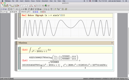 [edit]Plugin output can be embedded within TeXmacs documents using "executable switches";[23] in this way one can switch back and forth between a given input to the system and the corresponding output, which blends seamlessly in the document.
