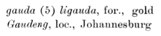 A snippet of text showing the Sesotho word "Gaudeng" (modern Gauteng) in Jacottet's A practical method to learn Sesuto: with exercises and a short vocabulary, published in 1906