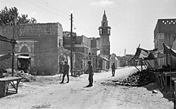After some street-fighting with Egyptian soldiers and Palestinian fedayeen, Khan Yunis fell to the Israelis.[50] Upon capturing Khan Yunis, the IDF committed an alleged massacre.[51] Israeli troops started executing unarmed Palestinians, mostly civilians; in one instance men were lined up against walls in central square and executed with machine guns.[52] The claims of a massacre were reported to the United Nations General Assembly on 15 December 1956 by UNRWA director Henry Labouisse, who reported from "trustworthy sources" that 275 people were killed in the massacre, of which 140 were refugees and 135 local residents.[53][54]