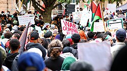 The government of South Africa has instituted proceedings, South Africa v. Israel, against Israel at the International Court of Justice (ICJ), alleging a violation of the Genocide Convention.[70] The Israeli government has denied South Africa's allegations and has argued that Israel is defending itself.[71][72] In an initial ruling, the ICJ held that South Africa was entitled to bring its case, while Palestinians were recognised to have a right to protection from genocide.[73] The court ordered Israel to take all measures within its power to prevent the commission of acts of genocide, to prevent and punish incitement to genocide, and to allow basic humanitarian service, aid, and supplies into Gaza.[74][75][71] The court later ordered Israel to increase humanitarian aid into Gaza and to halt the Rafah offensive.[76][77] Israel did not comply with the court's orders[78][79][80] and instead continued the Rafah offensive by displacing the city's inhabitants and razing thousands of buildings.[81][82]