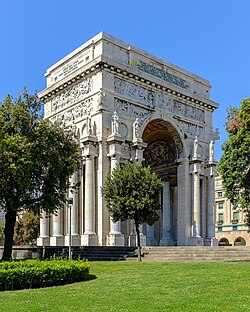 [edit]During the Siege of Genoa (1800), 30,000 of Genoa's 160,000 inhabitants had died of starvation and disease. After Bonaparte's seizure of power in France, a more conservative constitution was enacted, but the Ligurian Republic's life was short—in 1805 it was annexed by France, becoming the départements of Apennins, Gênes, and Montenotte.[49]