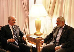 Meanwhile, in November 2008, in a meeting with 11 European members of parliaments, Hamas senior official Ismail Haniyeh repeated what he had written in June 2006 to U.S. President George W. Bush but with one extra condition: "the Hamas government had agreed to accept a Palestinian state that followed the 1967 borders and to offer Israel a long-term hudna (truce), if Israel recognized the Palestinians' national rights" – a proposal which he said Israel had declined.[124]