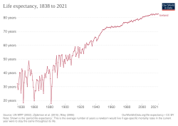 The Black Death reached Iceland in 1402–1404 and again in 1494–1495, with devastating effects.[41] The first outbreak is estimated to have killed 50–60% of the population, while the second resulted in a 30–50% mortality rate. These pandemics significantly reduced the population, leading to social and economic disruptions.[42]