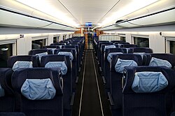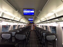 [edit]A total of 60 class 411 and 11 class 415 have been built so far (units built after 2004 belong to the modified second generation ICE-T2 batch). Both classes work reliably. Austria's ÖBB purchased three units in 2007, operating them jointly with DB. Even though DB assigned the name ICE-T to class 411/415, the T originally did not stand for tilting, but for Triebwagen (railcar), as DB's marketing department at first deemed the top speed too low for assignment of the InterCityExpress brand and therefore planned to refer to this class as IC-T (InterCity-Triebwagen). The trainsets of the T series were manufactured in 1999. The tilting system has been provided by Fiat Ferroviaria, now part of Alstom. ICE T trains can run at speeds of up to 230 km/h (143 mph).