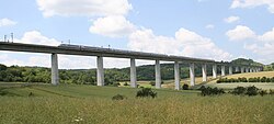 The ICE 3 runs at speeds up to 320 km/h (200 mph) on the LGV Est railway Strasbourg–Paris in France.