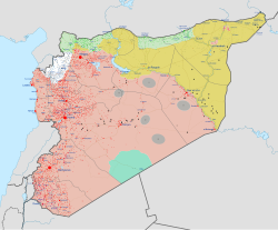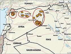 After 2015, the Iraqi Armed Forces and the Syrian Democratic Forces pushed back IS and degraded its financial and military infrastructure,[150] assisted by advisors, weapons, training, supplies, and airstrikes by the American-led coalition,[151] and later by Russian airstrikes, bombings, cruise missile attacks, and scorched-earth tactics across Syria, which focused mostly on razing Syrian opposition strongholds rather than IS bases.[152] By March 2019, IS lost the last of its territories in West Asia, although its affiliates maintained a significant territorial presence in Africa as of 2025.[153][143][144]