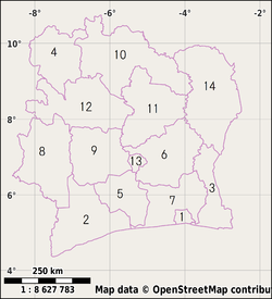 - ^ While Yamoussoukro is the seat of Bélier region, the city itself is not part of the region.