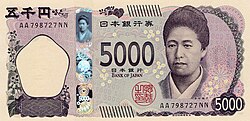 - ^ "Japan announces new ¥10,000, ¥5,000 and ¥1,000 bank notes as Reiwa Era looms". Japan Times. April 9, 2019. Archived from the original on November 20, 2022. Retrieved April 9, 2019.