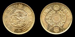 In 1897, the silver 1 yen coin was demonetized and the sizes of the gold coins were reduced by 50%, with 5, 10 and 20 yen coins issued.