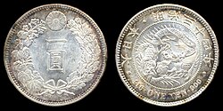 - Coins minted in 1900 bear the year 明治 (Meiji) 33, the 33rd year of Emperor Meiji's reign