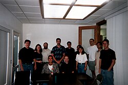 Though Bomis had at the time struggled to make money, it provided Wales with the funding to pursue his greater passion, an online encyclopedia.[8] While moderating an online discussion group devoted to the philosophy of Objectivism in the early 1990s, Wales had encountered Larry Sanger, a skeptic of the philosophy.[9] The two had engaged in detailed debate on the subject on Wales' list and then on Sanger's, eventually meeting offline to continue the debate and becoming friends.[9] Years later, after deciding to pursue his encyclopedia project and seeking a credentialed academic to lead it,[19] Wales hired Sanger—who at that time was a doctoral student in philosophy at Ohio State University—to be its editor-in-chief, and in March 2000, Nupedia ("the free encyclopedia"), a peer-reviewed, open-content encyclopedia, was launched.[8][11] The intent behind Nupedia was to have expert-written entries on a variety of topics and to sell advertising alongside the entries to make a profit.[9] The project was characterized by an extensive peer-review process designed to make its articles of a quality comparable to that of professional encyclopedias.[24]