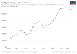 The sovereign state is a constitutional monarchy, but the king holds wide executive and legislative powers. Jordan is a founding member of the Arab League and the Organisation of Islamic Cooperation. Jordan has a high Human Development Index, ranking 100th, and is considered a lower middle income economy. The Jordanian economy, one of the smallest economies in the region, is attractive to foreign investors based upon a skilled workforce.[11] Jordan is a major tourist destination, also attracting medical tourism with its well-developed health sector.[12] Nonetheless, a lack of natural resources, large flow of refugees, and regional turmoil have hampered economic growth.[13]