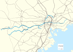 [edit]The Keio network is based around the central Keiō Line, 37.9 km (23.5 mi), 32 stations.