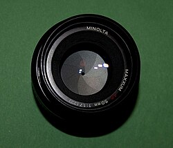 [edit]Macro lenses are designed for extreme closeup work. Such lenses are popular for nature shooting such as small flowers, as well as for many technical applications. As most of these lenses can also focus to infinity and tend to be quite sharp, many are used as general-purpose optics.