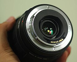[edit]The Nikon F-mount lens systems and the Pentax K-mount systems are the only 35 mm SLR camera systems (apart from the Leica M-mount rangefinder system) that allow a photographer to use a mechanical SLR camera body, a fully automatic SLR camera body, and a DSLR camera body, all utilizing the same lenses. The only aspects of these manufacturers' lenses that have changed are the addition of electronic contacts, autofocus abilities and, in some cases, the elimination of the external aperture ring for electronic control (i.e., Nikon's 'G-type' auto-Nikkors, which cannot be used on a mechanical SLR camera body).