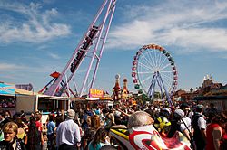 Located northwest of the city centre, the Parque del Oeste ("Park of the West") comprises part of the area of the former royal possession of the "Real Florida", and it features a slope as the height decreases down to the Manzanares.[99] Its southern extension includes the Temple of Debod, a transported ancient Egyptian temple.[100]