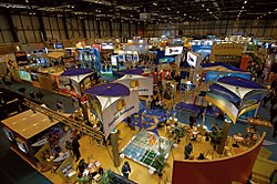 The Madrid urban agglomeration has the second-largest GDP in the European Union.[19] Madrid is ranked as an alpha world city by the Globalization and World Cities Research Network.[20] The metropolitan area hosts major Spanish companies such as Telefónica, Iberia, BBVA and FCC.[21] It concentrates the bulk of banking operations in Spain and it is the Spanish-speaking city generating the largest number of webpages.[21] Madrid houses the headquarters of UN Tourism, the Ibero-American General Secretariat (SEGIB), the Organization of Ibero-American States (OEI), and the Public Interest Oversight Board (PIOB). Pursuant to the standardizing role of the Royal Spanish Academy, Madrid is a centre for Spanish linguistic prescriptivism.[22] Madrid organises fairs such as FITUR,[23] ARCO,[24] SIMO TCI[25] and the Madrid Fashion Week.[26] Madrid is home to football clubs Real Madrid and Atlético Madrid.