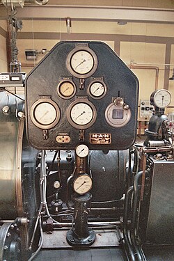 [edit]Modern automobiles have complex instrumentation. In addition to displays of engine rotational speed and vehicle linear speed, there are also displays of battery voltage and current, fluid levels, fluid temperatures, distance traveled, and feedback of various controls (turn signals, parking brake, headlights, transmission position). Cautions may be displayed for special problems (fuel low, check engine, tire pressure low, door ajar, seat belt unfastened). Problems are recorded so they can be reported to diagnostic equipment. Navigation systems can provide voice commands to reach a destination. Automotive instrumentation must be cheap and reliable over long periods in harsh environments. There may be independent airbag systems that contain sensors, logic and actuators. Anti-skid braking systems use sensors to control the brakes, while cruise control affects throttle position. A wide variety of services can be provided via communication links on the OnStar system. Autonomous cars (with exotic instrumentation) have been shown.