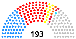 [edit]The current parliament was inaugurated in June 2019 after the 2019 Malawian general election. No party managed to secure a majority in the house. Peter Mutharika won the presidential election, but due to irregularities the constitutional court ordered a re-run of the presidential elections in 2020.[5] Parliament passed the Parliamentary and Presidential Elections Act (PPEA) Amendment Bill on 24 February 2020, extended the terms of MPs and local councillors by one year to allow for harmonised presidential, parliamentary and local elections in 2025.[6]