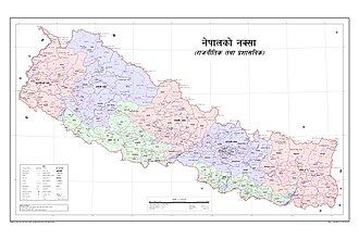 The Maoist Party joined mainstream politics following the success of the peaceful democratic revolution of 2006;[69] Nepal became a secular state,[70] and on 28 May 2008, it was declared a federal republic,[69] ending its time-honoured status as the world's only Hindu kingdom.[71] After a decade of instability and internal strife which saw two constituent assembly elections,[72][73][74][75] the new constitution was promulgated on 20 September 2015, making Nepal a federal democratic republic divided into seven provinces.[76][77]