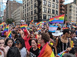 In 1969 the Stonewall riots were a series of violent protests by members of the gay community against a police raid that took place in the early morning of June 28, 1969, at the Stonewall Inn in Greenwich Village.[131] They are widely considered to be the single most important event leading to the gay liberation movement[128][132][133][134] and the modern fight for LGBT rights.[135][136] Wayne R. Dynes, author of the Encyclopedia of Homosexuality, wrote that drag queens were the only "transgender folks around" during the Stonewall riots. The transgender community in New York City played a significant role in fighting for LGBT equality.[137]