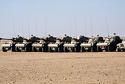 [edit]The army of Niger is poorly equipped with armored vehicles and tanks. With the exception of two armored vehicles purchased from China in 2009, most armoured vehicles are at least 20 years old.[17] The army is however well-stocked with 4x4 Toyota Land Cruisers mounted with various caliber machine guns. Logistically, fuel and water transportation tanks, and ambulances have been recently improved to help in long-distance patrol missions as well as with general increased logistic capacity of the army.[18][19]