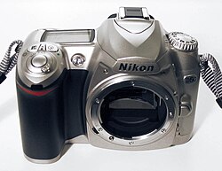 [edit]It has a 23.7 mm by 15.6 mm DX format image sensor with 6.1 million effective pixels. It also has a 2.0 in (51 mm) polysilicon TFT LCD with 130,000 pixels. The camera uses a through-the-lens full-aperture exposure metering system. It can simultaneously record NEF and JPEG data to a Secure Digital storage device. Like its newer, higher-end sibling (the D80), the D50 uses Secure Digital instead of CompactFlash cards found on previous Nikon digital SLRs. The camera is powered by a rechargeable lithium-ion battery which is claimed to be able to take up to 2,000 shots on a single charge. The camera is compatible with PictBridge printers and can shoot 2.5 frames per second in continuous mode. The camera's dimensions are 133 mm in width, 102 mm in height, and 76 mm in depth.[1]