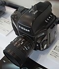 [edit]The Nikon E3 and Nikon E3S, co-developed with Fujifilm and marketed also as the Fujix DS-560 and Fujix DS-565,[2] are autofocus 1.3 megapixel professional grade quasi-full frame (35mm) digital single lens reflex cameras (DSLR) announced by the Nikon Corporation on 15 June 1998[8] and released in December 1999. The E3S is identical to the E3 except triple frame rate and larger buffer. They are followers of the Nikon E2N/E2NS.