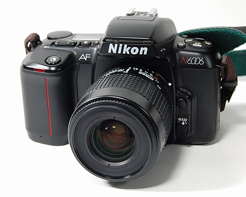 The Nikon F-601, otherwise known as the Nikon N6006, is a 35mm single-lens reflex (SLR) film camera that was produced by Nikon starting in 1990.[1] The F601 featured an improved second-generation autofocus system, motor drive for automatic film advance, a built-in pop-up electronic flash, a top shutter speed of 1/2000 of a second, and a new "Matrix" evaluative multi-zone metering program.