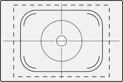 | T (TV) | Ground matte Fresnel | Horizontal split-image rangefinder, 3 mm diameter | 12 mm circle reference for center-weighted meter, etched lines for broadcast television aspect ratio (4:3) |