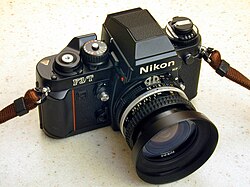 [edit]Finally there was the rarely seen 'F3AF', a model which included an autofocus (AF) pentaprism finder (DX-1) capable of autofocusing with two special AF Nikkor lenses—the first of their kind, which included focus motors in the lens bodies. Those lenses were the AF-80mm f/2.8 Nikkor and the AF-200mm f/3.5 Nikkor. It was the first autofocus camera to be produced by Nikon, in 1983.
