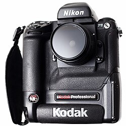 During the late 1990s, Nikon and Kodak collaborated on a range of professional digital SLRs which combined Nikon bodies with Kodak digital sensors and electronics. The initial range was based around the semi-professional Nikon F90, but the later Kodak DCS 600 and DCS 700 models were based on the Nikon F5. On a physical level they consisted of a Nikon F5 with the film transport equipment replaced with a custom-made Kodak digital back. The digital back extended beneath the camera to house the battery and a pair of PCMCIA card slots.