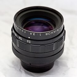 [edit]Nikkors constitute the majority of lenses available for the Nikon F-mount, which is itself the largest system of interchangeable flange-mount photographic lenses in history[clarification needed]. These lenses are designed for the 135 (35mm) and Nikon DX formats. Over 400 different F-mount Nikkor models are known to exist.[2]