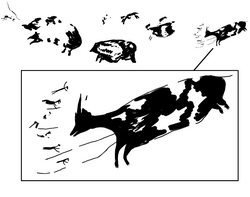 Redrawing of hunting scene from the Caves in the Maros-Pangkep karst