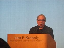 On February 26, 2012, Simon paid tribute to fellow musicians Chuck Berry and Leonard Cohen, who had received the first annual PEN Awards for songwriting excellence at the JFK Presidential Library.[82] In 2012, Simon released a 25th-anniversary box set of Graceland that included a remastered edition of the original album; the 2012 documentary film Under African Skies; the original 1987 "African Concert" from Zimbabwe; an audio narrative, The Story of Graceland, related by Simon; and other interviews and memorabilia.[83] He played a few concerts in Europe with the original musicians to commemorate the anniversary.[84] On December 19, 2012, Simon performed at the funeral of Victoria Leigh Soto, a teacher killed in the Sandy Hook Elementary School shooting.[85] In September 2013, he delivered the Richard Ellmann Lecture in Modern Literature at Emory University.[86]