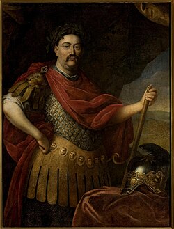 In 1648, the Polish hegemony over Ukraine sparked the Khmelnytsky Uprising,[95] followed by the decimating Swedish Deluge during the Second Northern War,[96] and Prussia's independence in 1657.[96] In 1683, John III Sobieski re-established military prowess when he halted the advance of an Ottoman Army into Europe at the Battle of Vienna.[97] The Saxon era, under Augustus II and Augustus III, saw neighboring powers grow in strength at the expense of Poland. Both Saxon kings faced opposition from Stanisław Leszczyński during the Great Northern War (1700) and the War of the Polish Succession (1733).[98]