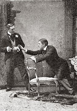 The Importance of Being Earnest, a Trivial Comedy for Serious People is a play by Oscar Wilde, the last of his four drawing-room plays, following Lady Windermere's Fan (1892), A Woman of No Importance (1893) and An Ideal Husband (1895). First performed on 14 February 1895 at the St James's Theatre in London, it is a farcical comedy depicting the tangled affairs of two young men about town who lead double lives to evade unwanted social obligations, both assuming the name Ernest while wooing the two young women of their affections. (Full article...) -